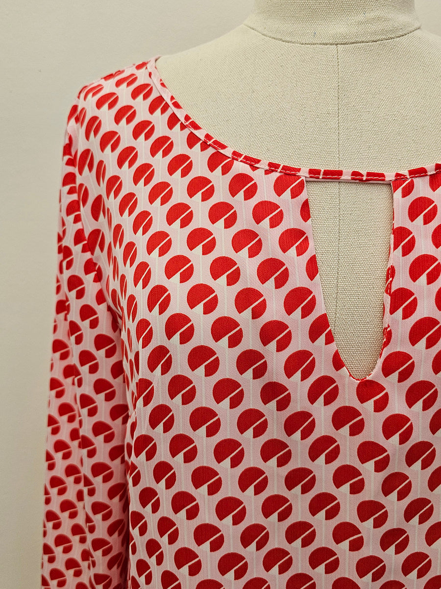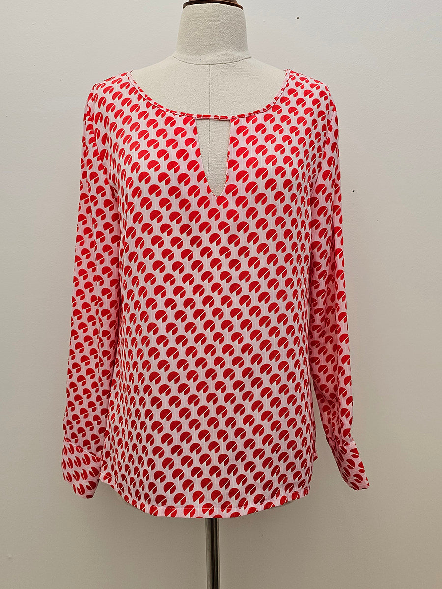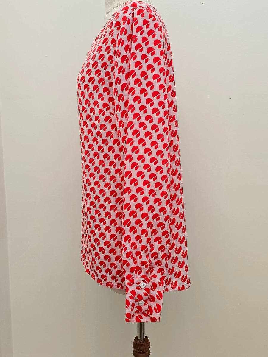 Great colourful graphic top. Long sleeves with button cuff and V neck detail.