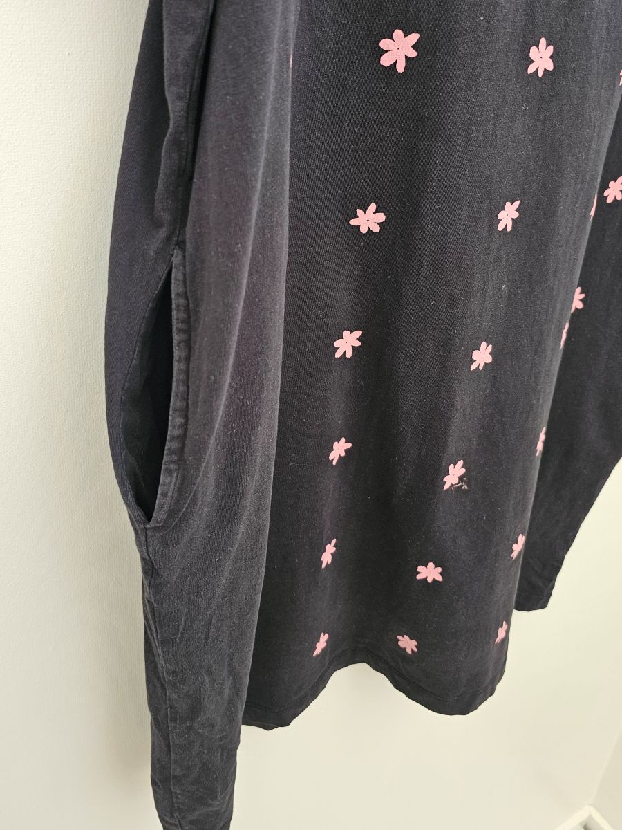 Lovely navy tunic style dress with printed panel of pink flowers down the front.