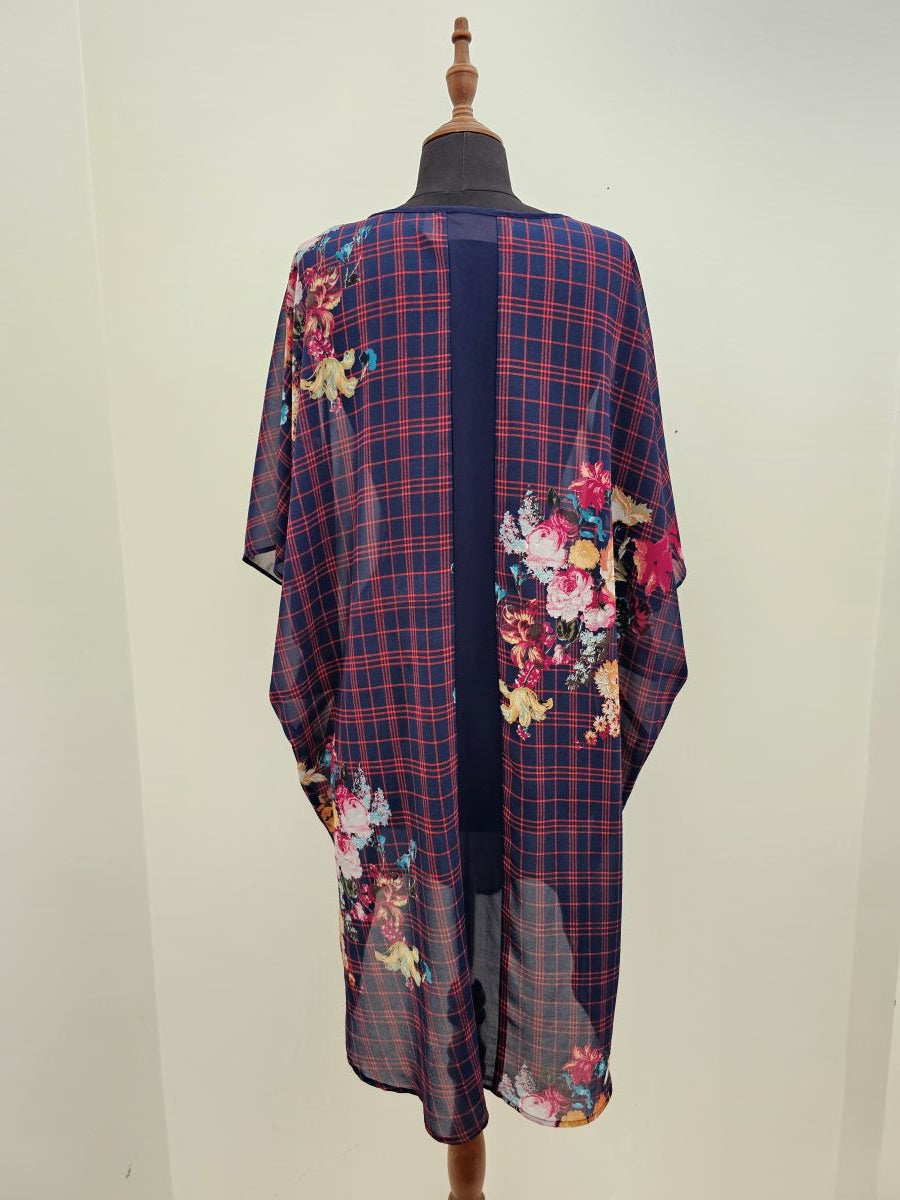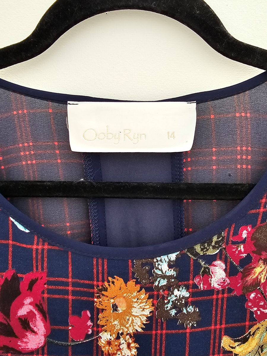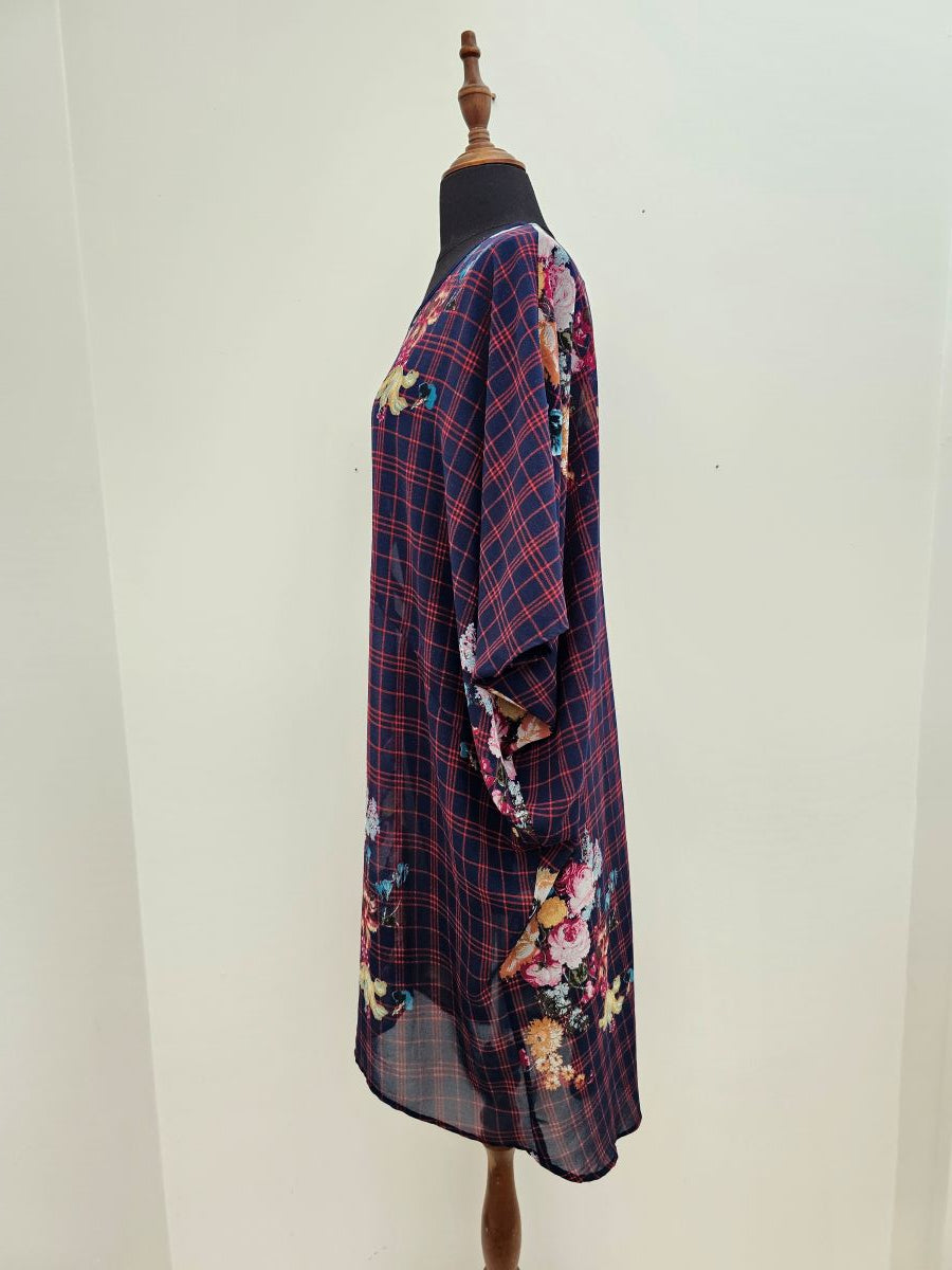 Flattering tunic made from eye catching floral over plaid NZ designed fabric.