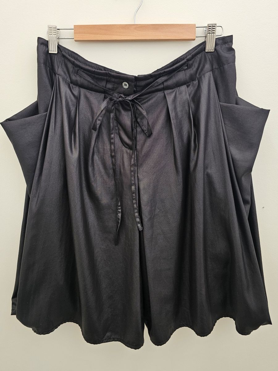 Sit just above the knee and so many unique features including: pleat front, button fly with tie, a split on the side where the pockets are layered and the pockets on the back are dropped lower.